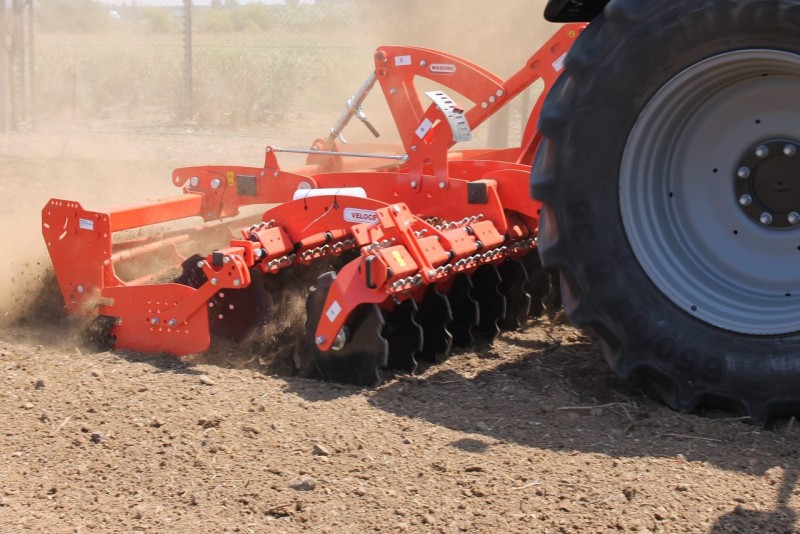The VELOCE is a light disc harrow for shallow seedbed preparation (up to 10cm). Discs are arranged on two rows with opposing disc direction; wide spacing (62cm) between rows prevents any soil and crop residue clogging.